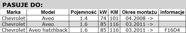 • Zestaw rozrządu INA Chevrolet Aveo