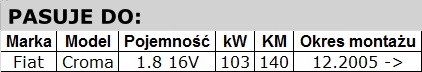 • Rozrząd kompletny INA Fiat Croma 1.8 16V 140KM