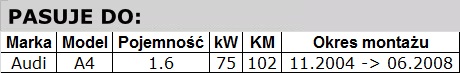 • Rozrząd kompletny Audi A4 1.6 102KM (11.2000 -> 12.2004)
