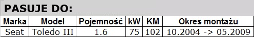 • Rozrząd kompletny Seat Toledo III 1.6 102KM (10.2004 -> 05.2009)