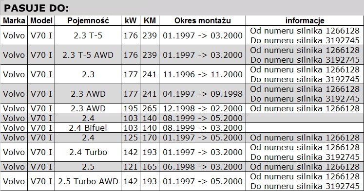 przeważająca część klientów posiadających Volvo V70 2.3, 2.4 lub 2.5, kupuje kompletny zestaw rozrządu wraz z pompą wody firmy SKF, gdyż świadomi ryzyka, wybierają jednorazową pełną naprawę, dzięki czemu oszczędzają czas oraz pieniądze. W tym jednym