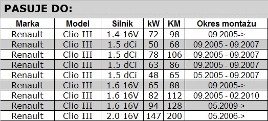 • Renault Clio III 1.4 1.5 dCi 1.6 2.0 16V