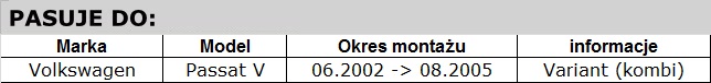 • Tylna wycieraczka Volkswagen Passat B5 (06.2002 -> 08.2005) - Kombi