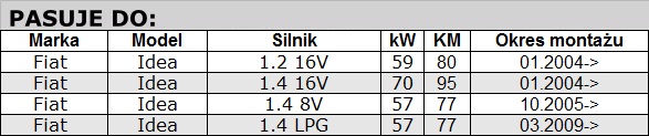 • Fiat Idea 1.2 16V 80KM, 1.4 8V 77KM, LPG 77KM, 16V 95KM