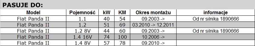 • Fiat Panda 1.1, 1.2, 1.2 8V, 1.4 8V, 16V