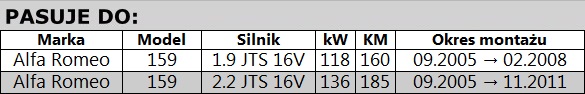 • Alfa Romeo 159 1.9 JTS, 2.2 JTS