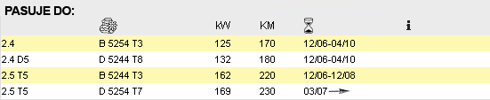 • Volvo C30 2.4 170KM, 2.4 D5 180KM, 2.4 D5 163KM, 2.5 T5 220KM, 2.5 T5 230KM