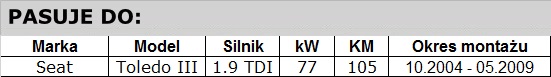 • Seat Toledo III1.9 TDI 105KM (10.2004-> 05.2009)