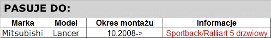 • Pióro wycieraczki na tył Mitsubishi Lancer Sportback (10.2008 -> ) - Sportback/ Ralliart 5-drzwiowy