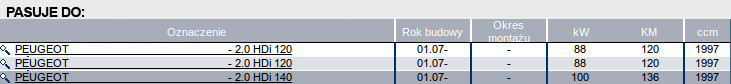 • Peugeot Expert nadwozie pełne 2.0 HDi 120KM (01.2007 -> ), Expert nadwozie pełne 2.0 HDi 136KM (01.2007 -> )