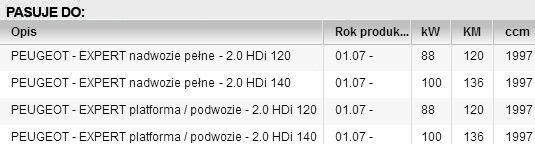 • Zestaw rozrządu + pompa wody Peugeot Expert nadwozie pełne