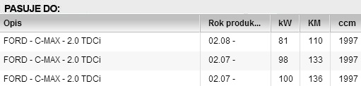 • Rozrząd kompletny INA GATES DOLZ Ford C-Max II 2.0 TDCi 81kW 110KM (02.2008 -> ), 2.0 TDCi 98kW 133KM (02.2007-> ), 2.0 TDCi 100kW 136KM (02.2007 -> )
