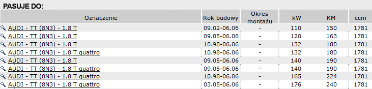 • Simmering Corteco - strona zabudowy : tył – oprawa skrzyni biegów Audi TT 1.8 T: 150KM (09.2002 -> 06.2006), 163KM (09.2005 -> 06.2006), 180KM (10.1998 -> 06.2006), 190KM (09.2005 -> 06.2006), 224KM (10.1998 -> 06.2006), 240KM (03.2005 -> 06.2006)