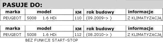 • Pasek wieloklinowy Peugeot 5008 1.6 HDi 109KM, 112KM - bez funkcji Start-stop. (09.2009-> )