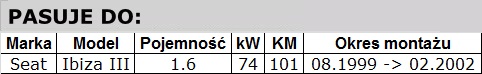 • Rozrząd kompletny Seat Ibiza 1.6 101KM (08.1999->02.2002)