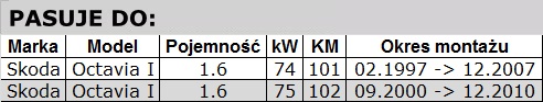 • Rozrząd kompletny Skoda Octavia 1.6 101KM, 102KM. (02.1997 -> 12.2010)
