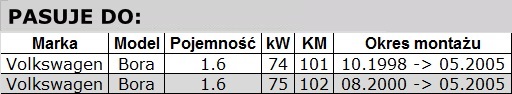 • Rozrząd kompletny Volkswagen Bora 1.6 101KM, 102KM. (10.1998->05.2005)