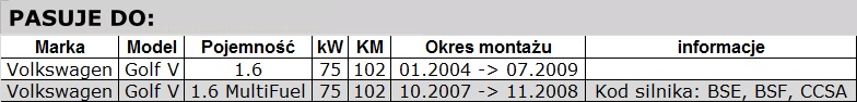 • Rozrząd kompletny Volkswagen Golf V 1.6 102KM (01.2004->11.2008); Variant 1.6 102KM (06.2007-> )