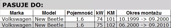 • Rozrząd kompletny Volkswagen New Beetle 1.6 100KM, 102KM (10.1999 -> )