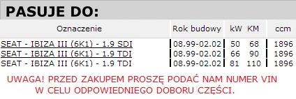 • Rozrząd kompletny Seat Ibiza 1.9 SDI 68KM, 1.9 TDI 90KM, 110KM. (08.1999->02.2002)