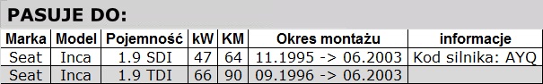 przeważająca część klientów posiadających Seata Inca 1.9 SDI oraz 1.9 TDI , kupuje kompletny zestaw rozrządu wraz z pompą wody firmy SKF, gdyż świadomi ryzyka, wybierają jednorazową pełną naprawę, dzięki czemu oszczędzają czas oraz pieniądze. W tym jednym