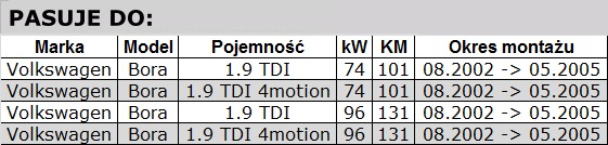 przeważająca część klientów posiadających Volkswagena Bora 1.9 TDI, 4motion oraz 4motion 130KM, kupuje kompletny zestaw rozrządu wraz z pompą wody firmy SKF, gdyż świadomi ryzyka, wybierają jednorazową pełną naprawę, dzięki czemu oszczędzają czas oraz pieniądze. W tym jednym