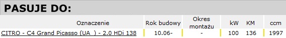 • Citroen C4 Grand Picasso 2.0 HDi 136KM (10.2006-> )