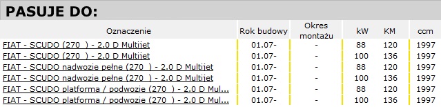 • Fiat Scudo 2.0 D Multijet 120KM, 136KM. (01.2007-> )