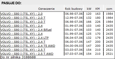 • Rozrząd kompletny Volvo S80 2.0 163KM, T 180KM, T 226KM, 2.4 140KM, Bifuel 140KM, 170KM, LTP 179KM, T 200KM, T5 AWD 200KM, 2.5 T 210KM, T AWD 210KM. (06.1998->07.2006)