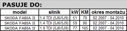 • Skoda Fabia II - 1.4 TDI (5J6/5J9), 1.9 TDI (5J6/5J9) - (02.2007 - 04.2010)