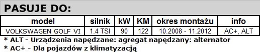 typu pojazdu, również VOLKSWAGEN GOLF VI 1.4 TSI 90kW. Zostały one również skonstruowane do najnowszych silników, w których nie są już stosowane napinacze.