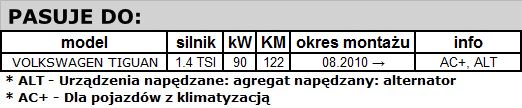 typu pojazdu, również VOLKSWAGEN TIGUAN 1.4 TSI 90kW. Zostały one również skonstruowane do najnowszych silników, w których nie są już stosowane napinacze.