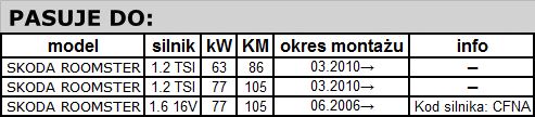 • Skoda Roomster 1.2 TSI oraz 1.6 16V (06.2006→)