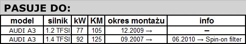 • Audi A3 1.2 TFSI, 1.4 TFSI (09.2007 →)