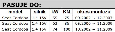przeważająca część klientów posiadających SEATA CORDOBA 1.4 16V 55KM, 1.4 16V 63KM oraz 1.4 16V 74KM, kupuje kompletny zestaw rozrządu wraz z pompą wody firmy SKF, gdyż świadomi ryzyka, wybierają jednorazową pełną naprawę, dzięki czemu oszczędzają czas oraz pieniądze. W tym jednym