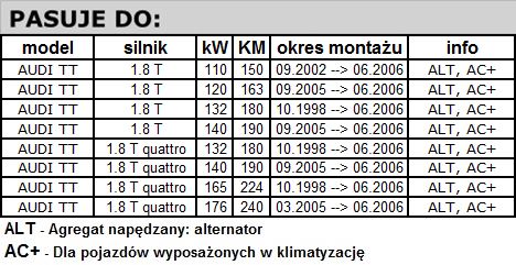• Wielorowkowy Pasek Klinowy AUDI TT 1.8 T oraz 1.8 T quattro (10.1998 --> 06.2006)