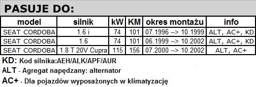 - Optymalny profil zapewnia płynny kontakt paska z kołem pasowym SEATA CORDOBA 1.6 i, 1.6 oraz 1.8 T 20V Cupra.