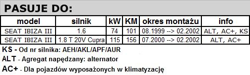 - Optymalny profil zapewnia płynny kontakt paska z kołem pasowym SEATA IBIZA III 1.6 oraz 1.8 T 20V Cupra.