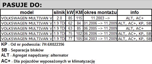 - Optymalny profil zapewnia płynny kontakt paska z kołem pasowym VOLKSWAGENA MULTIVAN V 2.0 oraz 1.9 TDI.