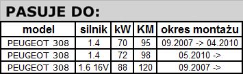 • PEUGEOT 308 1.4 oraz 1.6 VTI (09.2007 ->)