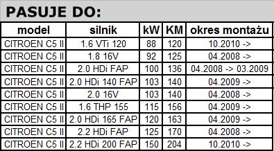 • CITROEN C5 II 1.6 VTi, 1.8 16V, 2.0 HDi , 2.0 16V, 1.6 THP oraz 2.2 HDi (04.2008 -> )
