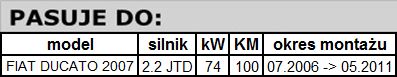 • FIAT DUCATO 2.2 JTD 74kW (07.2006 -> 05.2011)