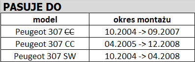 Zastosowanie po stronie: | Kierowcy i Pasażera |