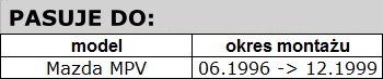 • Pióra wycieraczek Mazda MPV (06.1996 -> 12.1999)