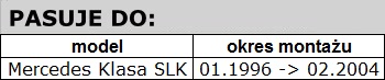 • Pióra wycieraczek Mercedes- Benz SLK (01.1996 -> 02.2004)