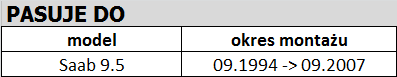 • Pióra wycieraczek do Saab 9-5 (09.1997->08.2007), kombi (10.1998->08.2007)