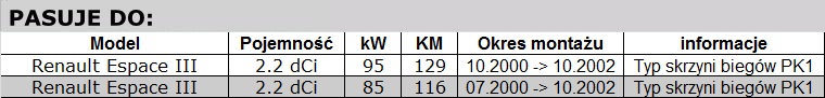 • Renault Espace 2.2 dCi 116KM i 129KM (07.2000 -> 10.2002)