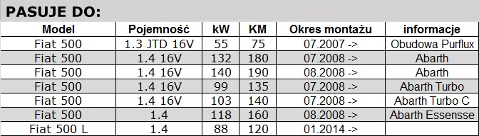 • Fiat 500 1.4 16V Abarth, 1.3 JTD 16V, 500L 1.4 120KM