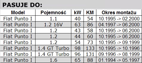 • Fiat Punto I 1.1,1.2,1.4,1.6